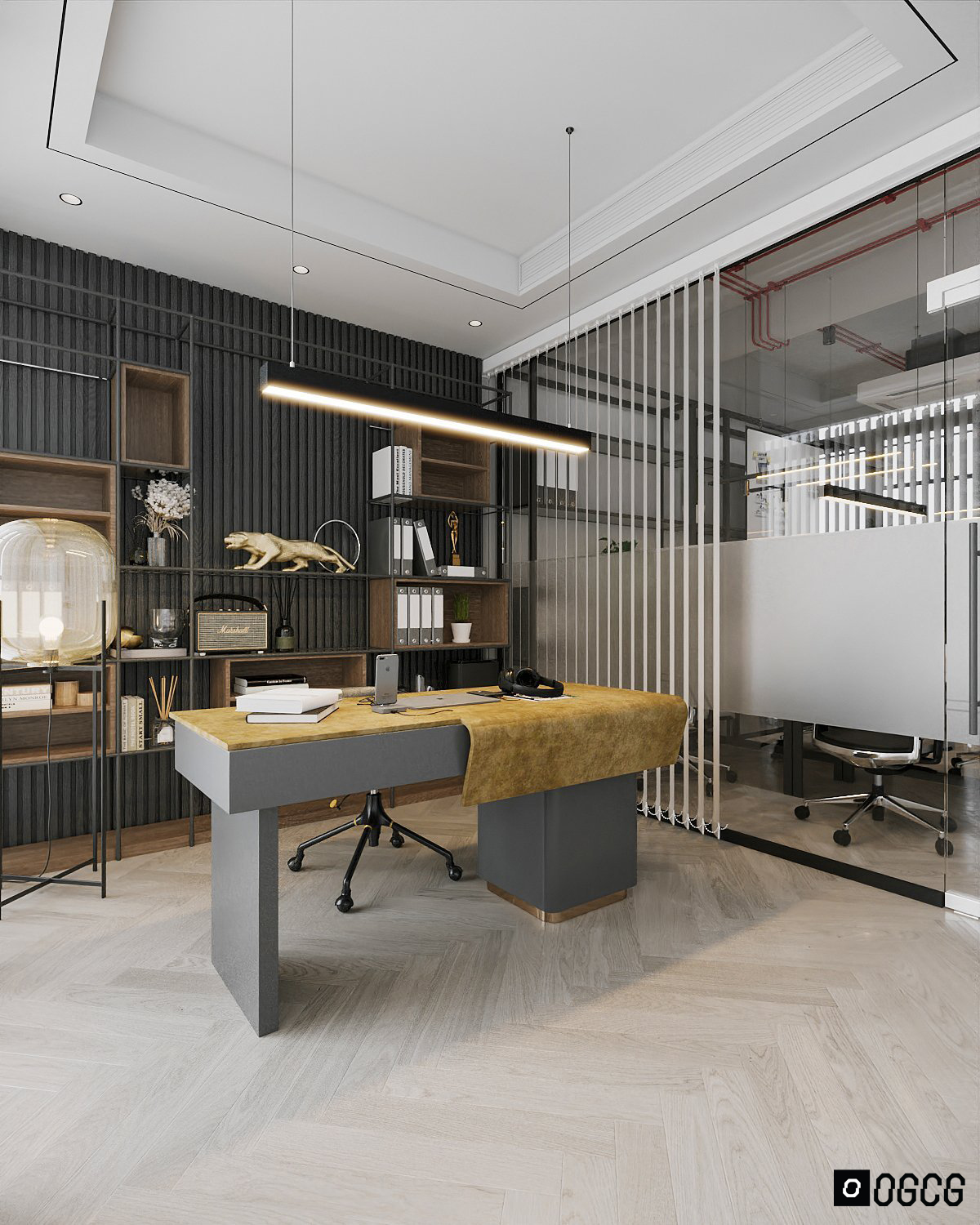 Client: Mr. Huy, Location: Ho Chi Minh, Year: 2023 Một trải nghiệm tuyệt vời của OGCG với thể loại công trình văn phòng mang phong cách factory. Với diện tích khiêm tốn nằm ngay mặt tiền Trần Hưng Đạo, OGCG đã biến tấu một văn phòng khá nhiều thiết bị hàng hóa trở nên gọn gàng và thẩm mĩ.